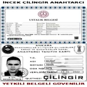 İncek Mahallesi Çilingir Ankara Anahtarcılar Odasına 0479 Üye No ile Kayıtlıdır....